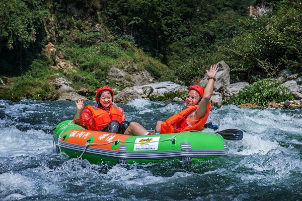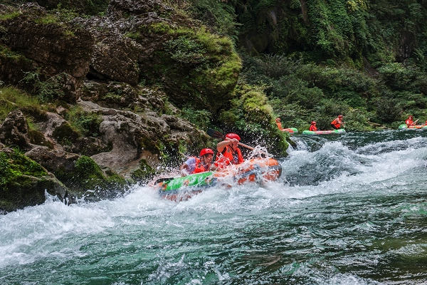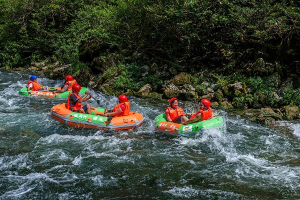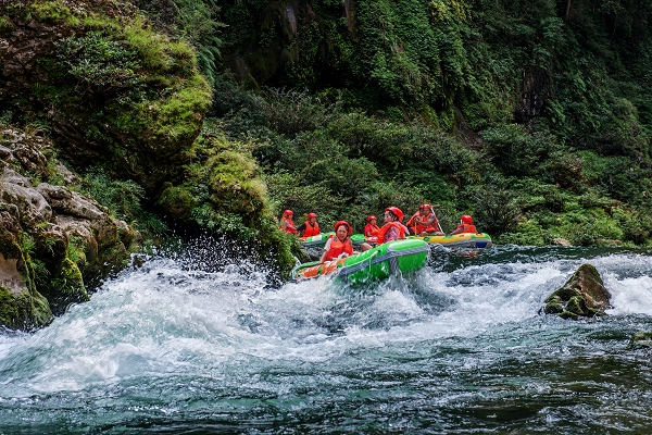 猛洞河水量豐富,河流坡降大,水急灘多浪奇,高大的峭壁直插水面,兩岸并相靠攏,形成幽深的峽谷景觀。沿河兩岸古木蒼天,蒼翠欲滴,奇石錯(cuò)落,流泉飛瀑隨處可見,下游一路水碧山青,風(fēng)光秀麗,野猴成群,溶洞奇特。猛洞河天下第一漂項(xiàng)目位于猛洞河支流,全長(zhǎng)47公里,最精彩處位于哈妮宮至牛路河段,長(zhǎng)約17公里。該景區(qū)兩岸多為原始次森林,蔥蔥郁郁,水流湍急,碧綠清亮,有十里絕壁,十里瀑泉,十里畫卷,十里洞天的美譽(yù)。其中有急流險(xiǎn)灘108處,大小瀑布20處。漂流,穿急流,越險(xiǎn)灘,闖狹谷,捕激浪,有驚無險(xiǎn),回味無窮。特別是哈妮宮、三角巖、雞籠門、遇仙峽(捏土)、閻王灘、落水坑、夢(mèng)思峽、鯉魚剖肚、三大炮等景點(diǎn),無不令人叫絕觀止。