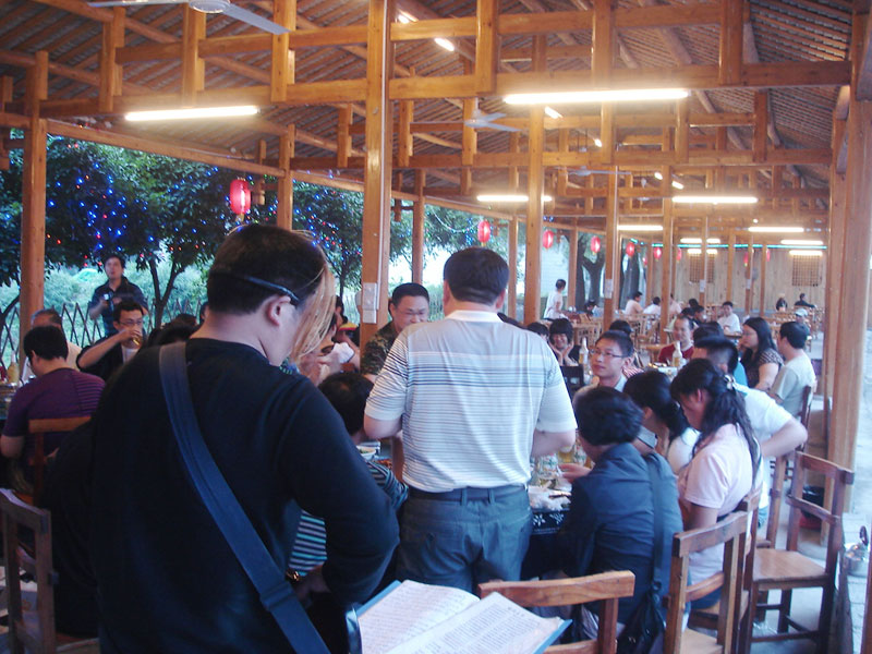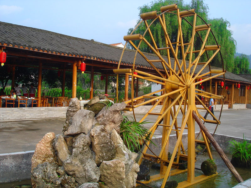 張家界武陵源大作坊美食城是一家集垂釣休閑,特色餐飲,夜市為一體的大型風(fēng)味美食城!位于風(fēng)景如畫的武陵源風(fēng)景區(qū)區(qū)政府所在地,占地3000多平方米,可同時(shí)容納400多人就餐。這里也是景區(qū)內(nèi)匯集土家美食,苗家美食的第一坊!美食城按純木四合院建造,內(nèi)設(shè)酒作坊,豆腐作坊,臘味作坊,糍粑作坊,有垂釣區(qū),燒烤區(qū),菜品自助區(qū),客人廚藝展示區(qū),農(nóng)產(chǎn)品展銷區(qū)等。酒作坊內(nèi)聘請了民間煮酒大師現(xiàn)場煮酒,你有機(jī)會(huì)可以現(xiàn)場吃到熱乎乎的頭鍋酒,酒坊內(nèi)有純米酒,包谷燒,高梁酒,有用野果泡制的各種果酒---燈籠酒,楊梅酒,彌猴桃酒等,更有特色的是把高梁酒放在正在生長的楠竹內(nèi),用竹內(nèi)竹膜的香味把酒增香,十二天就把竹子砍下再放養(yǎng)三天就好了,客人要吃現(xiàn)場鋸竹筒酒吃!豆腐坊也是聘請民間老農(nóng)現(xiàn)場用自制的石磨做豆腐,在這里你可以吃到真正有豆香味的原汁原味的石磨豆腐,和渣,菜豆腐,豆腐腦等豆制品!臘味作坊里有冬天用各種香料熏制的正宗湘西藏臘肉,臘豬頭肉,臘香腸,臘豬腳,各種臘制品臘野味等。糍粑坊每天在晚上人多用餐高峰時(shí)現(xiàn)場打滋粑,客人也可以自己參與打糍粑這個(gè)快樂的過程,想受過年時(shí)才有的熱鬧情景!在垂釣區(qū)里我們放養(yǎng)有很多野生魚類,有時(shí)間了你可以來這里休閑垂釣,得到的魚我們就會(huì)給你現(xiàn)場加工,有清沌的,紅燒的,青椒燜的,酸湯的,都很好吃哦。燒烤區(qū)里,我們高薪聘請了燒烤大師為你現(xiàn)場制做,你也可以自己動(dòng)手,有烤羊排羊腿,各種串烤,烤全魚,烤全兔等,還有各種鐵板烤可以自己炒著吃!菜品自己選區(qū)里有各種山野菜,壇子菜,干菜,臘味等,有各種鮮活的魚類,河蛘,水魚,田螺,龍蝦等,有各種農(nóng)家的土雞土鴨等,有各種鮮活的野味等你來享受美味呢!客人廚藝展示區(qū)里老板特設(shè)制地幾口大鍋, 很有特色的是, 你可以自己親自下廚, 酸甜苦辣任您自由調(diào)配 。 煮好了, 大家就圍著這“灶臺”合一的飯桌享受張家界的美食了。(張家界的三下鍋是很有特色的,是邊煮邊吃的, 只是這“三下鍋”是“大型三下鍋”而已。到張家界旅游,吃張家界的“三下鍋”是一種獨(dú)有的旅游體驗(yàn),到大作坊吃“大型三下鍋”,則更將會(huì)為你的旅程增添一份難得的回味。農(nóng)產(chǎn)品展銷區(qū)里展示著當(dāng)?shù)鼗蛳嫖鞯貐^(qū)最暢銷的農(nóng)產(chǎn)品食品:正宗湘西鄉(xiāng)里臘肉,香腸,各種臘制品,洗車河霉豆腐,靈潔牌剁椒辣醬系列,菌油,正宗茶籽油,苗家酸湯,鄉(xiāng)里正宗葛粉,大壇湘西五糧液,竹簡敲敲酒,張家界茅巖霉茶,野生蜂蜜,高山葛粉,張家界第一山珍巖耳,葛根片等等!