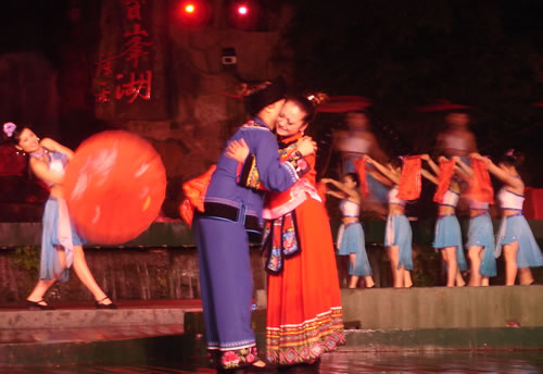 姑娘出嫁,為女人一生中最大的喜事,本應(yīng)充滿幸福、歡樂的氣氛。然而,舊時(shí)湘西、湘南、鄂西、川西(成都等地)、黔東(銅仁、凱里一帶)諸地,卻流行著一種與之完全相反情調(diào)的古老婚俗——“哭嫁”。也就是在姑娘“出閣”之前,不但新娘本人哭得很傷心,像淚人一般;而且,新娘的母親、姐妹以及姑媽、姨媽、舅媽及其他交往較多的女友,都要陪著新娘哭。湘西土家族哭嫁的風(fēng)俗尤為普遍、濃厚,不但哭嫁的時(shí)間較長(zhǎng)(少則十來天,多達(dá)個(gè)把月),而且哭嫁歌也保存得古樸、完整。 姑娘出嫁為什么要哭?哪有那么多的東西可哭?這是一種蘊(yùn)含甚為豐厚的人生禮俗,也是一種饒有興趣的婚俗事象。 俗話悅:“人不傷心不落淚。”姑娘出嫁之所以要哭,是因?yàn)樵谂f式婚姻制度下,女孩(尤其是勞苦大眾家庭的女孩)總是作為犧牲品“拋”(賣)給夫家的,她們的身心受到極大傷害。因此,湘西等地的女孩在出嫁之前要哭泣,要呼號(hào),哭嫁歌就是感情發(fā)泄的最好表現(xiàn)方式。 哭嫁的源起 哭嫁的風(fēng)俗,不知道起源于什么時(shí)候。戰(zhàn)國(guó)時(shí)期,趙國(guó)的公主嫁到燕國(guó)去作王后,她的母親趙太后在臨別時(shí)"持其踵,為之泣,祝曰,必勿使返。"大約就是后來長(zhǎng)盛不衰的哭嫁風(fēng)俗的濫觴了。 這種風(fēng)俗,直至清末還盛行于四川農(nóng)村中,隨地區(qū)變化而大同小異。解放前,聽老人們說,早些時(shí)候,沒有嫁而不哭的人家。如果出現(xiàn)嫁而不哭的姑娘,也會(huì)被鄰里看作沒有教養(yǎng)的人,傳為笑柄;相傳有出嫁姑娘不哭而遭母親責(zé)打的事,這位母親當(dāng)然算得上是入流導(dǎo)演了。 舊時(shí)宣講故事中,有花轎臨門,父親強(qiáng)令哭《迎風(fēng)罵媒歌》的情節(jié),可知哭嫁是有歌詞的,帶有表演性質(zhì),原是用來渲染氣氛,以悲襯喜;不過,因?yàn)榛橐鍪前k的,真哭真罵的也不會(huì)少。 抗日戰(zhàn)爭(zhēng)后期,風(fēng)氣較開,哭嫁之風(fēng)已不盛行,而老人們卻還在津津樂道,哭的方式是,從婚期前一個(gè)月的首日起,入黃昏,姑娘訴哭約一個(gè)小時(shí),其聲嗚嗚。十天以后,她的母親加入"陪哭";又十天以后,她的祖母加入陪哭。這家沒有諸姑姊妹,人們說,如果有的話,也應(yīng)當(dāng)加入陪哭行列的。 哭嫁在川西叫"坐堂"。清代吉道人《味蔗軒隨筆·坐堂詞》云:"婚姻之禮,各省風(fēng)俗不同。然酌禮準(zhǔn)情,各省亦大同小異。凡男家娶婦先賦之詩(shī),謂之'催妝';女家親串頌女之詞,謂之'坐堂'。坐堂者,女當(dāng)喜期將近之先數(shù)夕,其諸姑伯姊,置酒為女祖餞,各述吉祥之詞,以為頌美,女則申己之意以答。女左右更有少女,則隨而嫻習(xí)者也。其詞要多鄙俚,然有音韻凄清,風(fēng)格遒勁,如古歌古謠者。羅江明府蔡,微服巡查鄉(xiāng)里,一日行至某處,值有女子歸,諸娣姒咸以諛詞頌女,女申意以答。忽風(fēng)吹句入耳,詞曰:'鳳凰落在桌子上,哪個(gè)女兒肯離娘'。一字一轉(zhuǎn),音韻凄其,誰謂天籟之鳴,不在愚夫愚婦耶!"云云。吉道人姓周名際唐,成都人。吉道人記得明明白白,可惜他只記了一句哭嫁詞,難窺全貌。好在舊時(shí)坊間叢刻中有《訓(xùn)女哭嫁》一種,可見一斑。這本小書的目錄有《閨聲哭》、《娘訓(xùn)女》、《嫂哭妹》、《哭爹媽》、《哭哥嫂》、《花轎到屋哭》、《哭叔爺》、《哭兄弟》、《哭外公外婆》、《哭舅爺》、《拜香火哭》等等,編次有點(diǎn)凌亂,似乎隨手所記,未經(jīng)文人之手。遙想《詩(shī)》十五國(guó)風(fēng)未刪之時(shí),大約也不過如此吧! 閨聲哭 娘聽后園鳥雀驚,要聽房中女兒聲。 我娘當(dāng)門苦葛藤,手攀苦葛訴苦情。 我娘苦情苦過了,女兒苦情才起根。 ............ 桔子開花葉子青,陽(yáng)雀開聲我開聲。 新打銅盆才裝水,新打剪刀兩面青。 娘不開口我開口,娘不開聲我開聲。 當(dāng)門一根木蓮樹,目連樹上掛卷經(jīng)。 一本經(jīng)書背完了,未見我娘來開聲。 虧了我娘睡得穩(wěn),爹媽眼淚貴如金。 哭爹媽 月亮彎彎照華堂,女兒開言叫爹娘。 父母養(yǎng)兒空指望,如似南柯夢(mèng)一場(chǎng)。 一尺五寸把兒養(yǎng),移干就濕苦非常。 ............ 勞心費(fèi)力成虛恍,枉自爹娘苦一場(chǎng)。 哭兄弟 黑漆茶盤烏木頭,姐姐離娘弟不留。 留到姐姐吃你飯,留到姐姐穿你衣。 兄弟當(dāng)家掙家忙,嫁了姐姐買地方。 上頭買齊潼川府,下頭買齊遂寧鄉(xiāng)。 ............ 這個(gè)本子所記是川北的歌詞,以前所見的是川南,吉道人所記的是川西,川東,大約也不會(huì)大異的。遺憾的是,該書所記哭嫁詞雖有"只怨媒人莫良心"等語(yǔ),卻沒有列出"罵媒專目,大約是怕媒人太難堪了吧! 其實(shí),罵媒是哭嫁中必不可少的節(jié)目,也是最具反抗色彩的哭嫁歌詞。舊社會(huì),婦女無婚姻自由可言,由于"三從四德"的束縛,平時(shí)對(duì)于自己的終身大事幾乎不能置一詞,全由媒人和父母擺布;因此,這登花轎之前的"罵媒",便是難得的發(fā)泄機(jī)會(huì)。這早已反映在戲曲和民間說唱等藝術(shù)之中。 以前,川劇《柳蔭記》有《英臺(tái)罵媒》一折,英臺(tái)罵媒人,言詞激烈,聲色俱厲,充分表現(xiàn)了祝英臺(tái)剛烈的性格和反封建精神。她罵道:"提媒婆,更恨她,胡言亂語(yǔ)嘴喳喳......唯愿你,房屋遭火化,田園水推