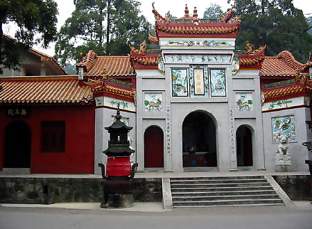 在岳麓山半腰,系晉初古寺,是佛教人湘最早的一所大寺。明神宗時 更名為萬壽寺,民國初年復(fù)名,古麓山專。唐代大詩人杜甫曾用“寺門高開 洞庭野,殿腳插入赤沙湖”的詩句稱頌殿字宏大。大雄寶殿等主要建筑,于 1944年被炸毀,僅存山門和觀音閣,現(xiàn)已修整一新.山門上有“古麓出寺” 的橫額,兩旁為“漢魏最初名勝,湖湘第一道場"對聯(lián),門外古楓參天,濃 蔭覆蓋,門內(nèi)園圃百花爭艷。觀音閣為磚木結(jié)構(gòu),1955年曾加以修葺,1980 年再次修整恢復(fù)原貌,并在廳堂神龕中置觀音像。閻內(nèi)常舉辦小型書畫展 覽。觀音閣前有兩株羅漢松,左邊一株是六朝遺跡,稱“六朝松",樹 齡在1700年以上, 是岳麓山植物界的"元老", 老干新枝,紛繁翁 郁,彌足珍貴;右邊一株于清代被巨風拔去并被清代人補植。兩棵古松 并峙于閣前,游人樹下經(jīng)過,若入關(guān)隘,故有“關(guān)松"之稱。