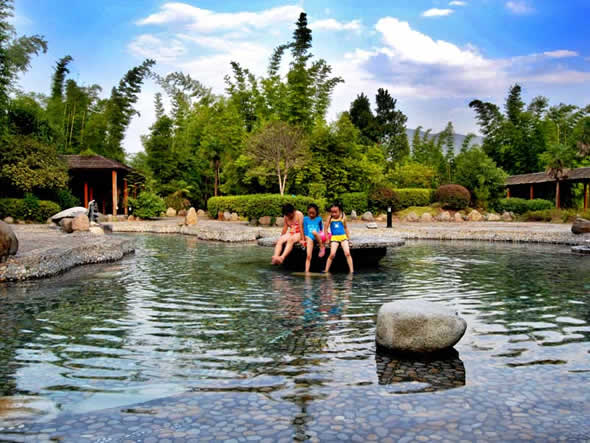 熱水溫泉,位于湘、粵、贛三省交界的熱水鎮(zhèn),是我國(guó)南方水溫最高,流量最大,水質(zhì)最好,熱田面積最寬的天然溫泉。熱水水溫一般為 91.5℃,最高達(dá)98℃。熱泉水無色透明,稍有硫化氫氣味,為低礦化、低硬度、高溫弱堿性重碳酸、硫酸-鈉型氟及硅質(zhì)礦泉水,含硅、鈉、鉀、鈣、鍶、硼、氟、氡等三十多種對(duì)人體有益的元素。其中“氡”元素正常情況含量30IMA即可做為生殖系統(tǒng)輔助治療藥物,根據(jù)聯(lián)合國(guó)教科文組織官員實(shí)地考察,福泉山莊熱泉水“氡”含量達(dá)到了130IMA左右,對(duì)治療不孕不育的生殖系統(tǒng)疾病有較好的輔助治療效果。