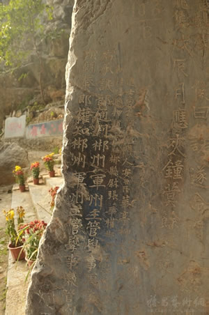 萬華巖摩崖石刻群 位于郴州市北湖區(qū)萬華巖鎮(zhèn)萬華巖國家級風(fēng)景名勝區(qū)內(nèi)。萬華巖洞內(nèi)留下了大量的宋代、清代石刻。其中立于清咸豐十年(1860)三月的《坦山萬華巖敘》碑,高1.5米,寬1.0米,厚0.3米,碑文800字,楷書,字跡清晰。記載了太平軍攻入郴州和退出郴州的時(shí)間、地點(diǎn)及當(dāng)年太平軍犯郴及當(dāng)?shù)匕傩盏挚沟那闆r。