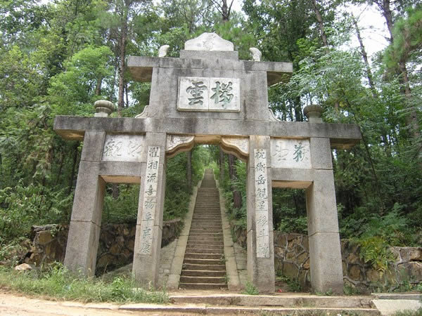 千步云梯 在金紫峰東南側(cè)松林內(nèi),是由花崗巖砌成的石梯,漫步攀登,給人以“欲窮千里目,更上一層樓”的感覺。