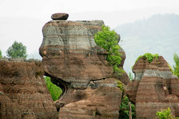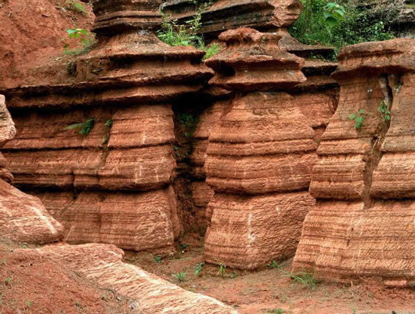 這些石柱不但顏色各異,而且大小不等。有的高達七、八米,而有些則像半埋于地下的巨獸骨架。一位村民告訴記者,現(xiàn)在石林沒有以前壯觀,都長渣子(灌木)了。原因是由于山頂樹木減少,雨水將泥土帶下山,很多石頭都被埋在土下,后來這些地方都開墾了農(nóng)田,石林也被永久覆蓋。
