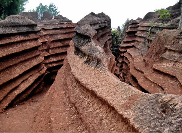 目前湖南省境內(nèi),張家界市與湘西自治州均發(fā)現(xiàn)了紅石林,其中湘西古丈紅石林2005 年被批準為國家地質(zhì)公園。據(jù)了解古丈紅石林最初也深埋地下,只有部分留在地表,確定為景區(qū)后,大型的挖掘機械在景區(qū)內(nèi)連續(xù)作業(yè),讓深埋地下的石林全部重見天日。而我市的紅石林仍然在沉睡著等人喚醒。