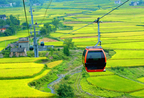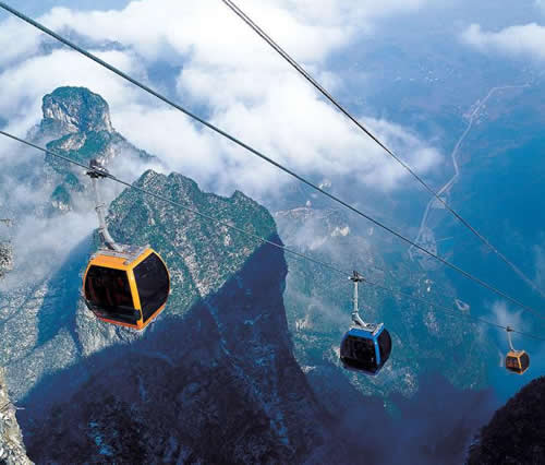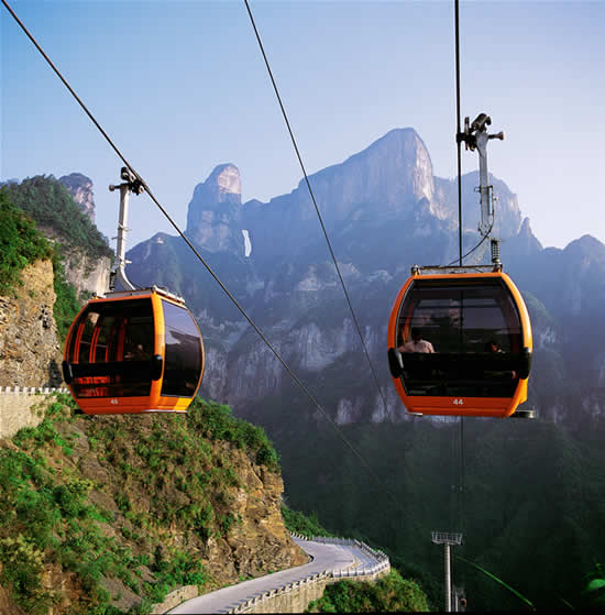 天門山索道是世界最長(zhǎng)的高山客運(yùn)索道,位于張家界天門山。共有轎廂98個(gè),索道支架57 個(gè)(含3個(gè)救護(hù)支架),全部采用法國(guó)POMA公司原裝進(jìn)口設(shè)備。索道全長(zhǎng)7454米,高差1277米,是國(guó)內(nèi)為數(shù)不多高差超過(guò)千米的索道之一,其中站到上站之間的局部斜度更高達(dá)37度,世界罕見(jiàn),是國(guó)內(nèi)局部斜度最大的索道,同時(shí)也是支架最多的索道。