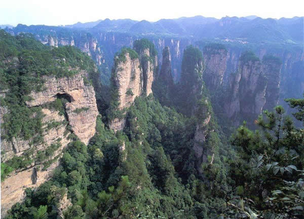 這就是大觀臺(tái)。極日遠(yuǎn)眺,千百座奇峰盡收眼底。一位詩人說,武陵源的砂巖石峰是一步一觀景,千步千造型,一山有四季,十步不同大。專家測算出武陵源石峰有3103座。一如一位高超的雕塑大師,模擬宇宙萬物,無不形態(tài)逼真,維妙維肖,栩栩如生,呼之欲動(dòng)。有的如海螺出水,有的如金龜銜日,有的如蓮花盛開,有的如天橋橫空,有的如長槍刺大,有的如寶塔聳立,有的如老人采藥,有的如玉女梳妝,有的如將軍出征,有的如戰(zhàn)馬長嘯,有的如情人幽會(huì),有的如夫妻相擁,有的如仙女散花,有的如村姑守望……有的孤峰獨(dú)秀,有的直插云霄,有的婷婷玉立,有的威武勇猛,有的小巧玲瓏,有的大氣磅礴。進(jìn)入武陵源,但見一片峰的森林,峰的世界,峰的海洋。挺拔、奇秀、集中、原始、粗獷、古野。這就是武陵源。 一位藝術(shù)大師說:武陵源的山峰,改寫了山的概念。大攝影家陳勃說 :“三山五岳堪比美,華夏風(fēng)光第一流。”王繼杰先生說:“武陵源上二日游,勝讀千篇李杜詩!痹S世杰先生說:“秀幽險(xiǎn)峻稱奇絕,五岳黃山拜·卜風(fēng)。”李成瑞先生為此大抱不平:“神州勝景誰為最?須請(qǐng)霞公重評(píng)勘!笨上煜伎蜔o緣到大觀臺(tái)來,也不可能為武陵源作甚評(píng)價(jià)了。