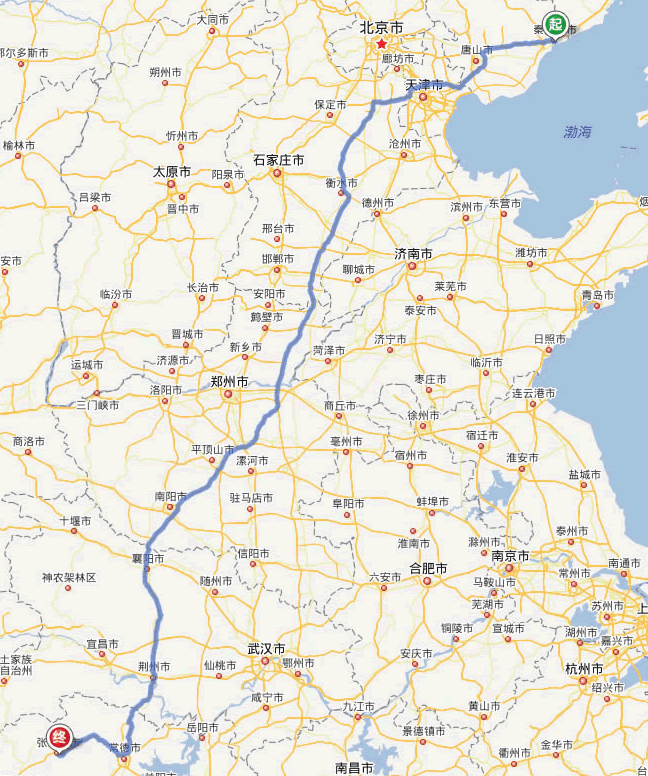 現(xiàn)在位置:張家界旅行社->交通指南->自駕車路線 -> 秦皇島到張家界自駕車旅游路線地圖,秦皇島去張家界有多少公里