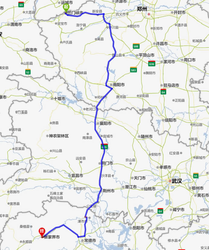 三門(mén)峽去張家界自駕車(chē)自助游線(xiàn)路圖全程高速):
