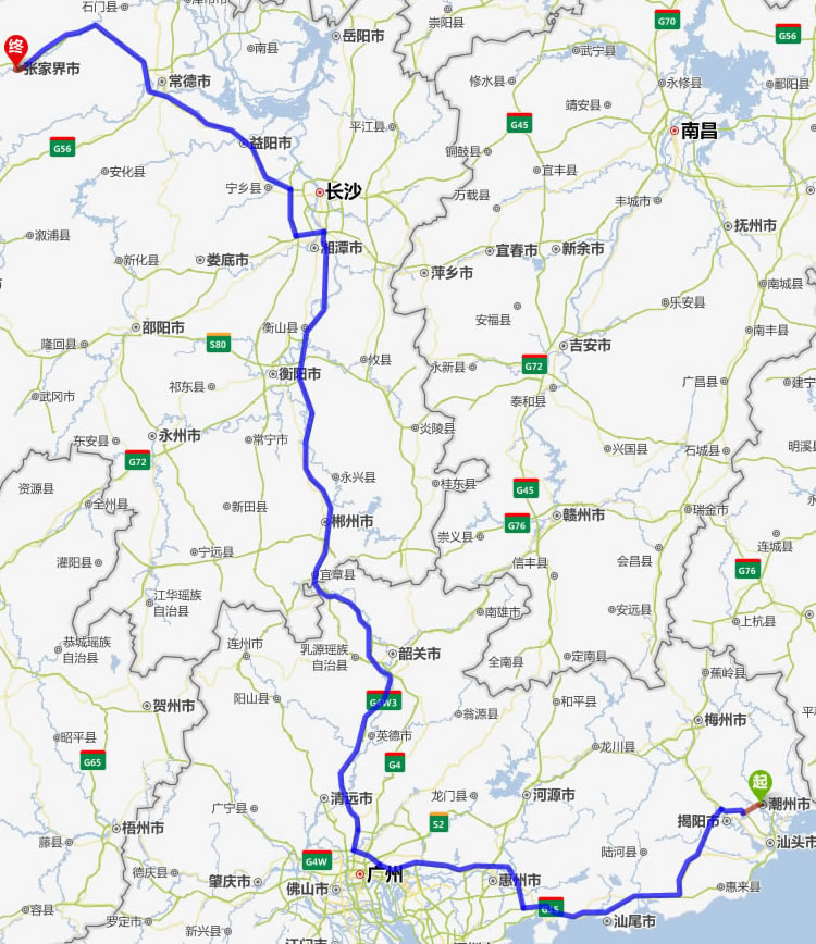 現(xiàn)在位置:張家界旅行社->交通指南->自駕車路線 -> 揭陽到張家界旅游自駕車線路,揭陽去張家界自己開車要多長時(shí)間,有多少公里