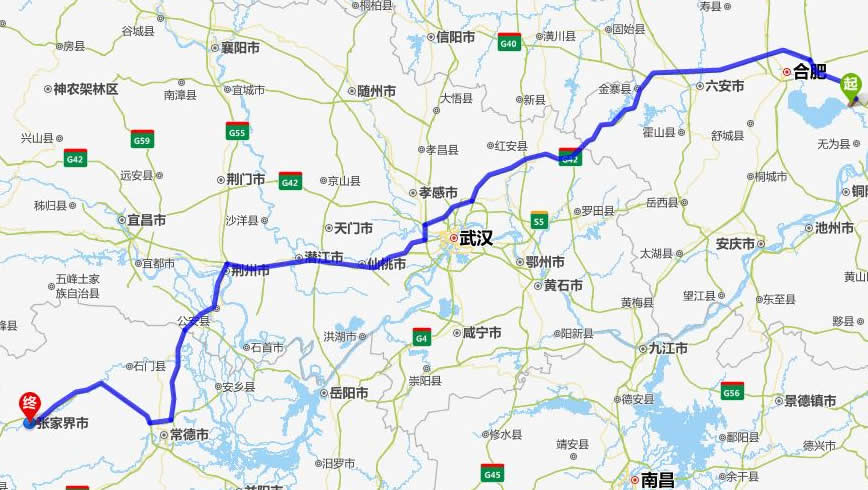 巢湖去張家界自駕車自助游線路圖全程高速):